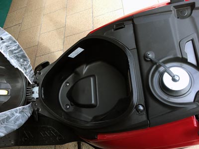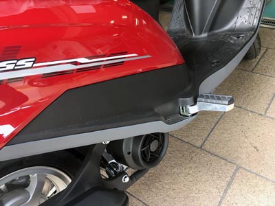 カットフロアボードにより良好な足つき性と、12インチの大径フロントホイールによる