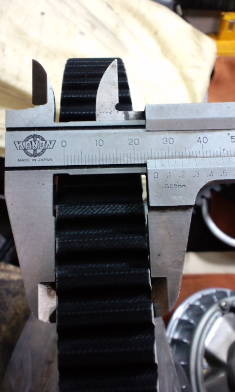 Vベルトは3mmも摩耗してベルトが細くなってます