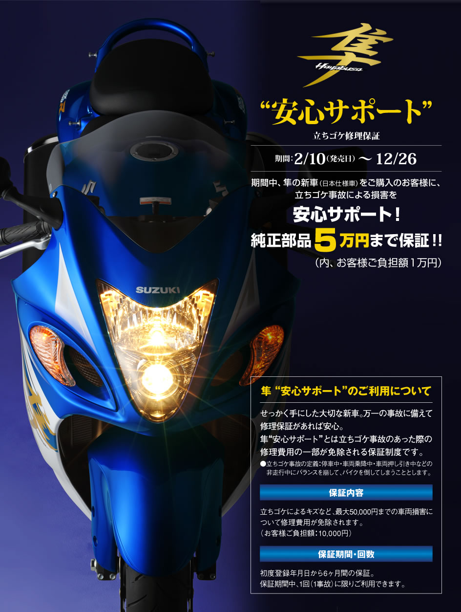 「 隼 」 安心サポート 立ちゴケ修理保証