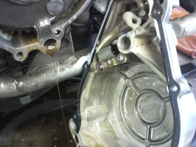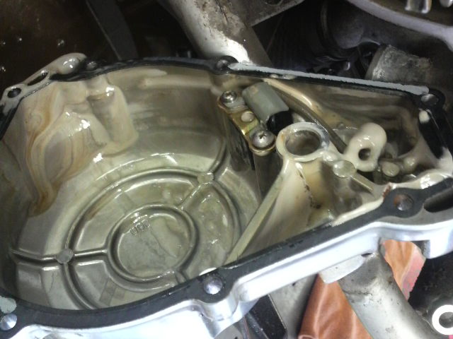 ケースカバー内部にも乳化したオイルが層をなして鎮座してました