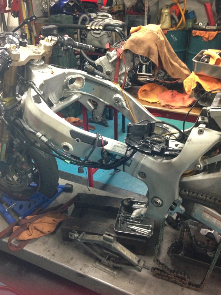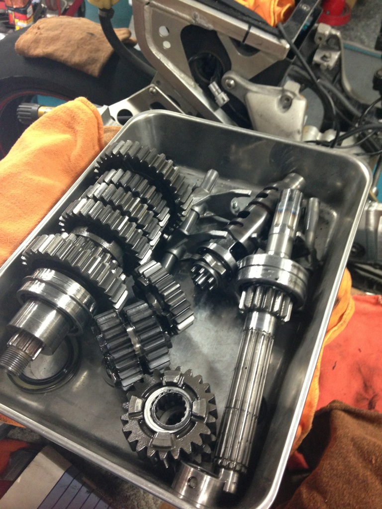 今回の作業車両はハヤブサ X-1ニュートラル時にミッション廻りから激しい異音が走行距離はすでに10万キロとすこし早速エンジンを下ろしますよー さすが1300CC フレーム剛性が高そうですで、エンジンから外したミッションのほうは・・・ シフトフォークが焼けてますか・・というわけで、ギアのほうもかなりのダメージが ドッグの部分が削れてましたミッションギアとシフトフォークやらをさくっと交換して異音のほうは無くなりました併せて前回クラッチを交換して5万キロなのでクラッチもハウジングから一式交換となりました