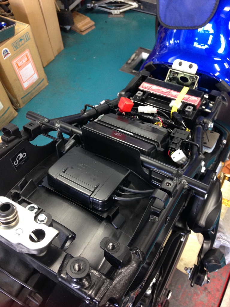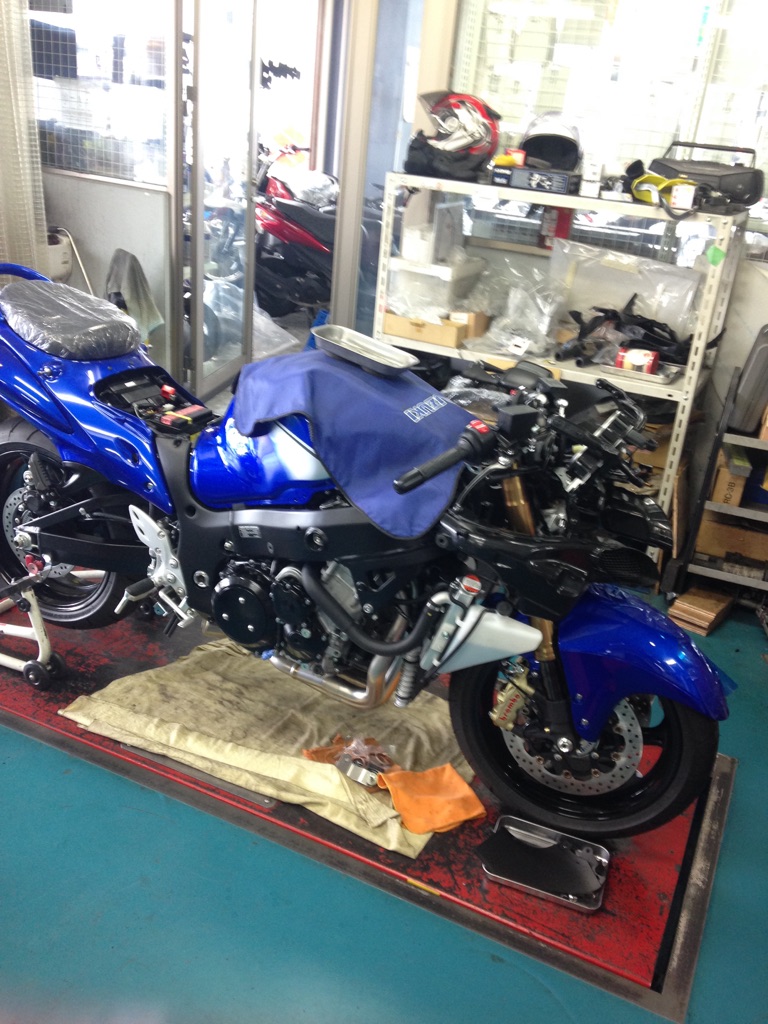 バックステップの取付と、ヨシムラのフルエキの取付です
