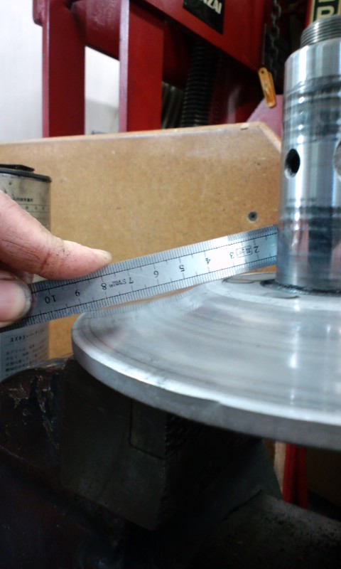 左が新品のプーリーフェイス面、定規に沿ってまっすぐなラインですが