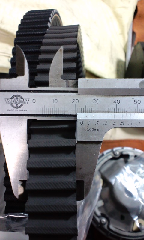 Vベルトは3mmも摩耗してベルトが細くなってます